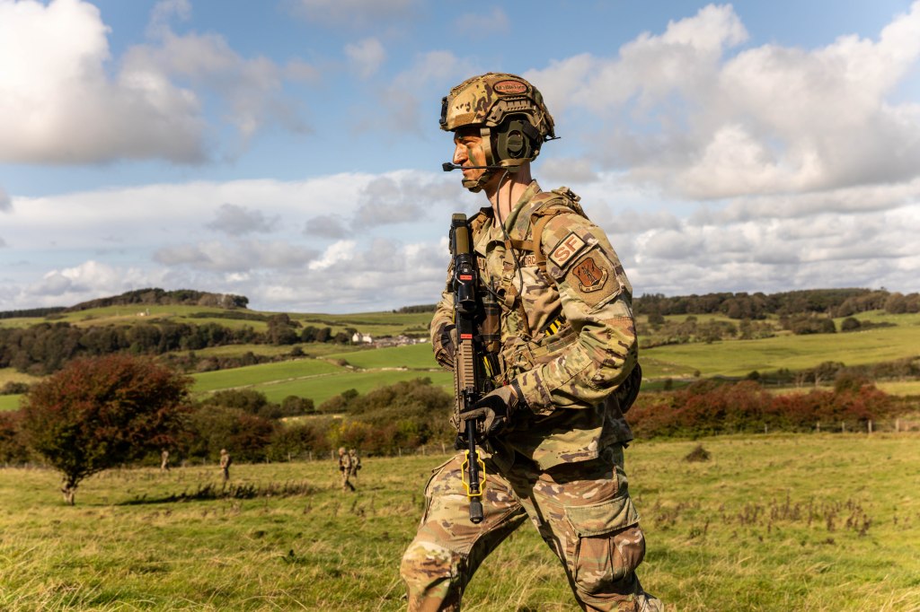 Exercise Galloway Defender saw the RAF Regiment Force elements of 603 (City of Edinburgh) Squadron and 2622 (Highland) Squadron work alongside personnel from the 101st Security Forces Squadron of the US Air National Guard, practising Agile Combat Employment (ACE).