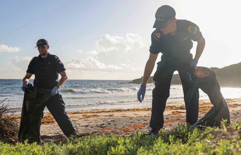 Sixteen sailors joined community group ‘Walk Fuh Yuh Future’ on a beach clean-up on the east side of the island.