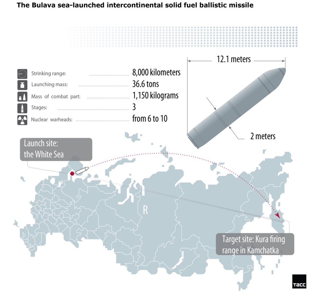 The Russian Defence Ministry announced on Sunday that it successfully launched a Bulava Intercontinental Ballistic Missile from its Navy’s newest nuclear powered submarine, the Imperator Alexander III from the White Sea.