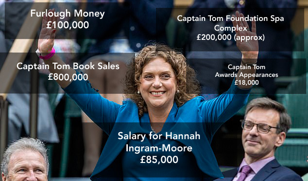 Using the Foundations name, Moore and her husband built an unauthorised large spa building in the grounds of their £1.2million home in Bedfordshire and then went of to ask for retrospective planning permission that the Bedfordshire Council denied and ordered it to be demolished. Representatives of the Moore family have claimed that the spa would “enable Captain Tom’s story to be enjoyed by the public” and could be used for coffee mornings and twice weekly for spa rehabilitation for the elderly.