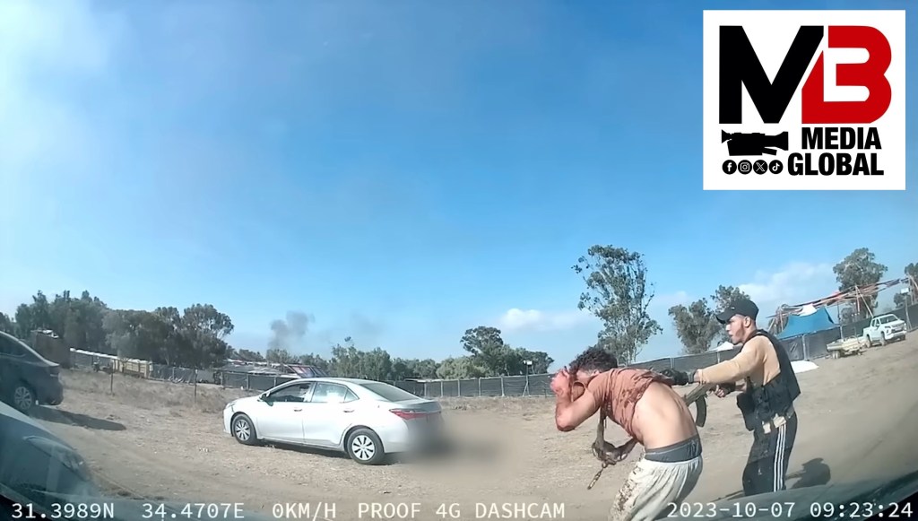 The footage, captures the attack just after 0700hrs on 7th October where the attack lasts several hours.