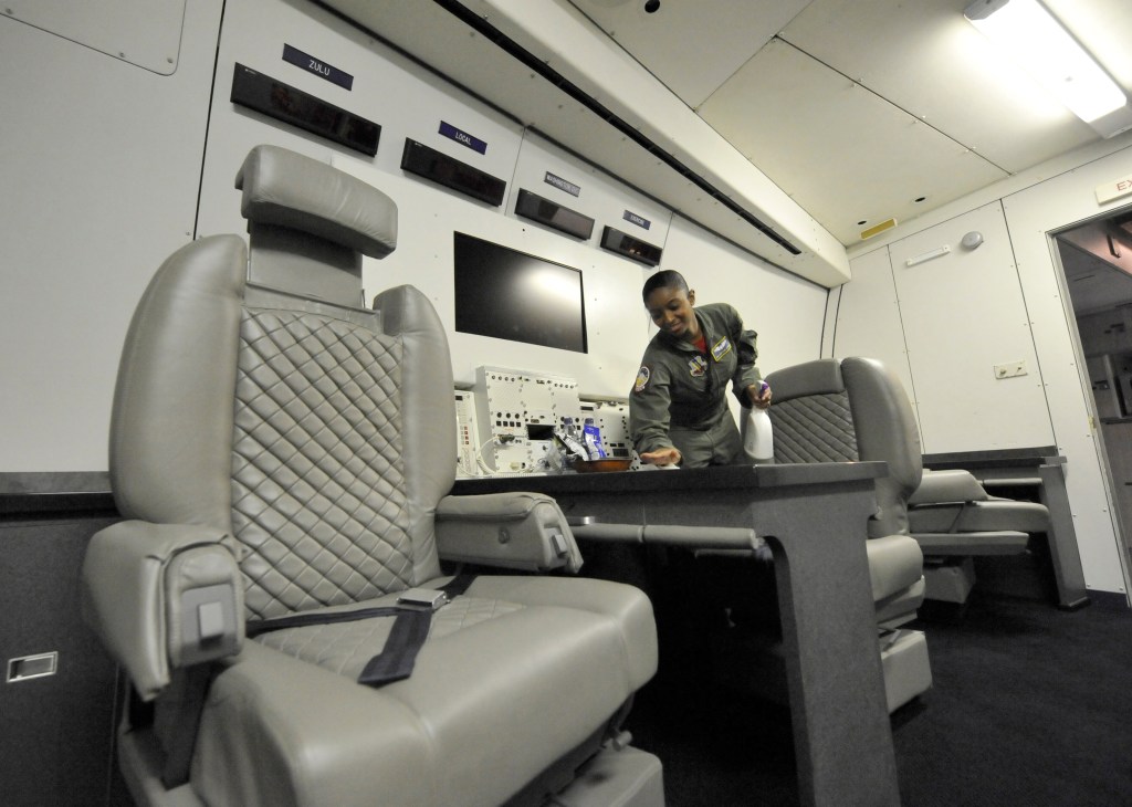 Boeing is the builder of the current E-4B, a modified 747, which serves as the Defence Secretary’s primary mode of transportation but can also act as an airborne command centre in the event of a national emergency like a nuclear attack. The aircraft is also known as the Survivable Airborne Operations Center, or SAOC, and four of the jets are currently in the service’s inventory.