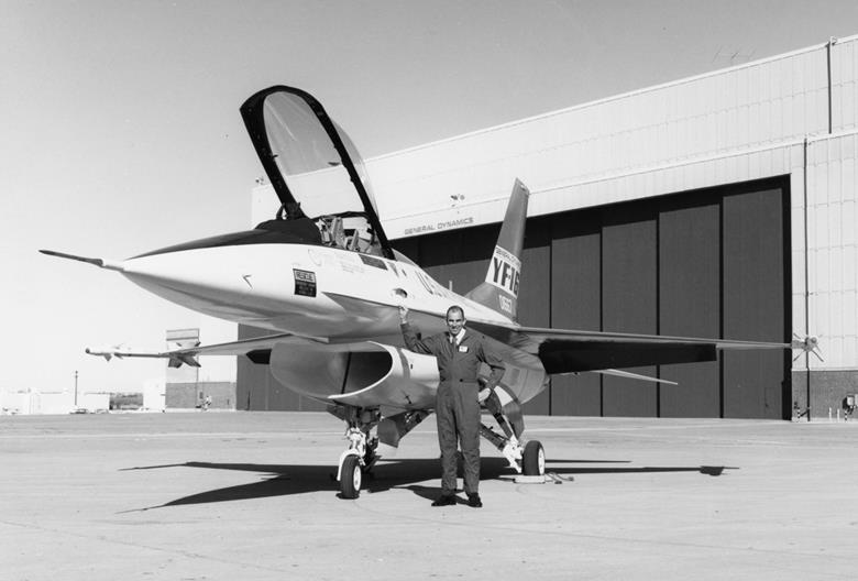 Test pilot Phil Oestricher was at the controls for both ‘first’ flights involving prototype YF-16