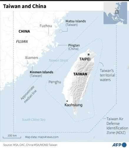 Taiwan, which is approximately 100miles off the east coast of China is seen by Beijing as a renegade province that must come under its control.