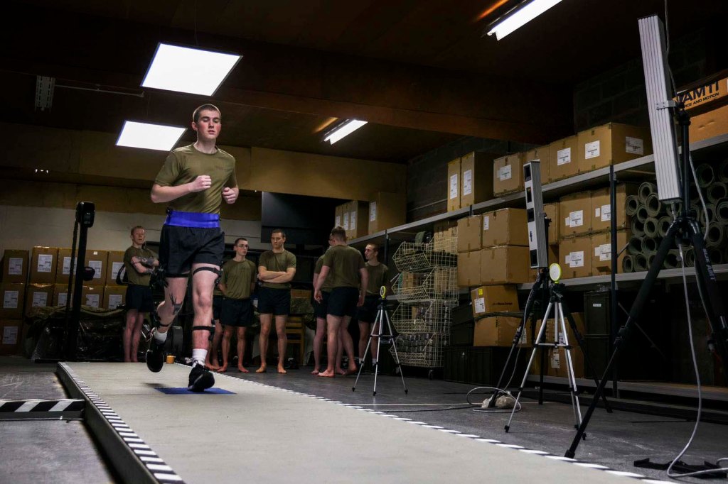 Motion capture technology (kinematics) record recruits’ gait as they walk or run across a series of pressure points and pads, assessing how and where they distribute their body weight as they do so.