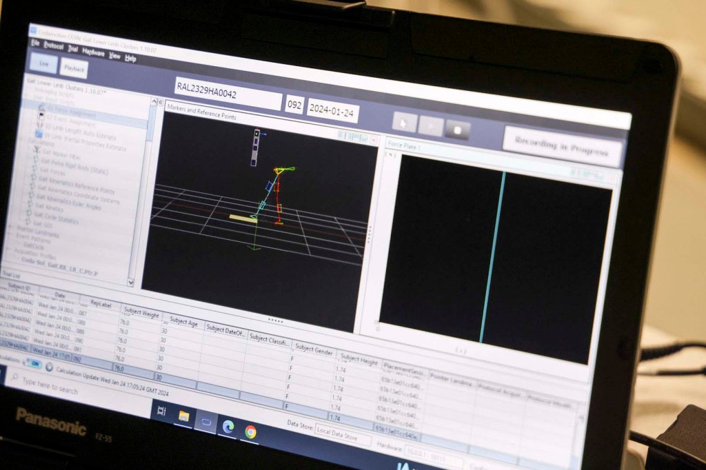 “It creates a ‘virtual stick person’ who replicates exactly how you run or walk. We can calculate angles and forces someone puts through their body when walking or running to see if there are any factors which make them susceptible to certain injuries.”