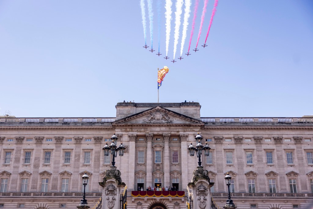 The formation, led by Chinook helicopters from No. 7 Squadron of RAF Odiham, flew over Buckingham Palace as the Royal Family watched on from the balcony at 13:00 on Saturday 15 June 2024 following the King’s Birthday Parade (Trooping the Colour).